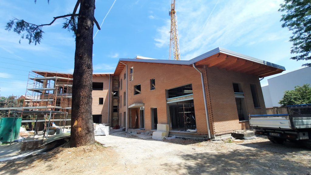 Facciate in mattoni faccia a vista sp .12 cm, (in intonaco su cappotto solo sulle pareti arretrate dei balconi): un rivestimento durevole con bassa manutenzione e ricco delle suggestioni di uno storico e tipico materiale della tradizione costruttiva locale. Isolamenti termici con poliestere ad altissima prestazione sul lato esterno a cui si aggiunge verso l’interno lana di roccia in una controparete in fibrogesso, garantiscono un isolamento termico-acustico ottimale, ad altissima sostenibilità ambientale.